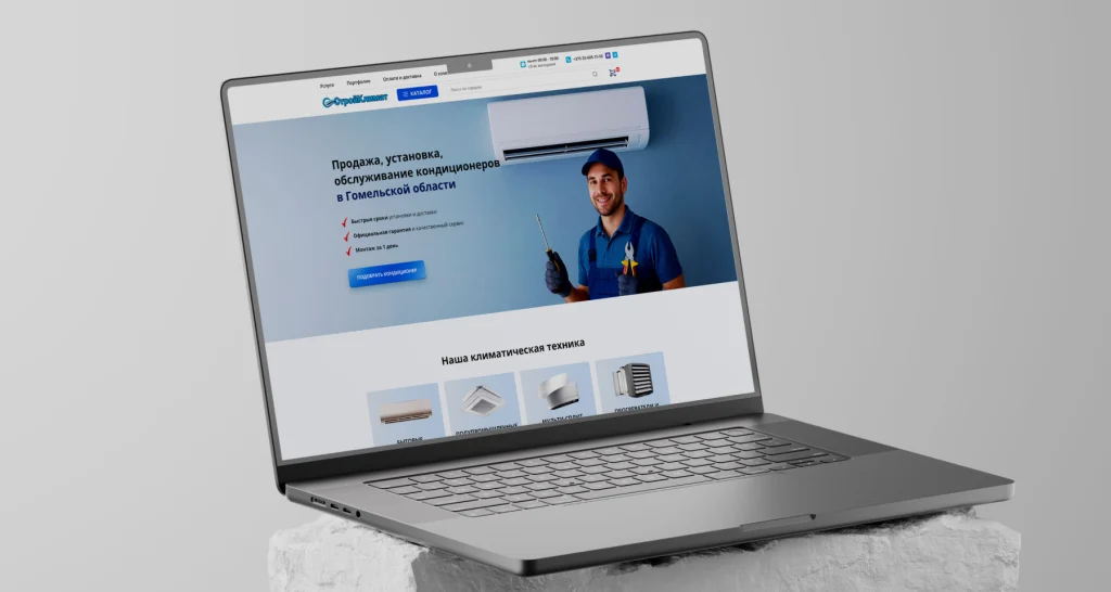 Разработка интернет-магазина для компании, специализирующейся на комплексных решениях в области климатического оборудования. ООО «СтройКлимат» занимается продажей, установкой и обслуживанием кондиционеров для частных клиентов, офисов, магазинов и промышленных объектов. Компания работает с передовыми брендами и предлагает полный цикл услуг — от подбора оборудования до гарантийного обслуживания.